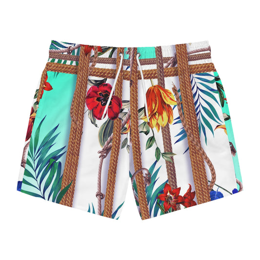 Nina Sharae Men's Bathing Suits Swim Trunks Quick Dry Beach Shorts with Pockets | Tropical Rope Blue Flower Shorts