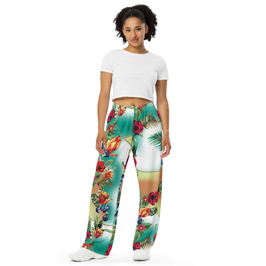 Nina Sharae Swimwear | TRIANGLE BIKINI TOP ONLY- TROPICAL ORANGE MINT GREEN HAWAIIAN PRINT | PLUS SIZE WIDE LEG PANTS