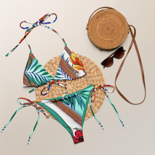 Nina Sharae Swimwear | Recycled String Bikini Blue Hawaiian Rope & Flowers Print