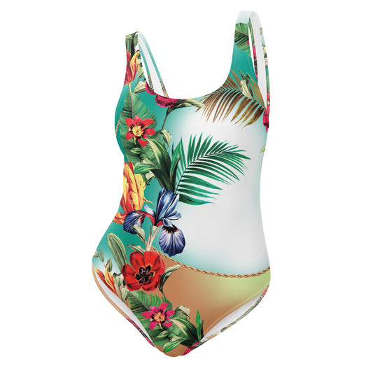 Nina Shrae Swimwear | Tropical Orange Mint Green Hawaiian One-Piece Swimsuit | Plus- Size