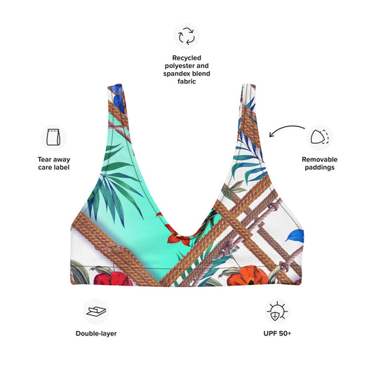 Nina Sharae Resort | High-Waisted Blue Hawaiian Flowers & Rope Padded Bikini Top Only