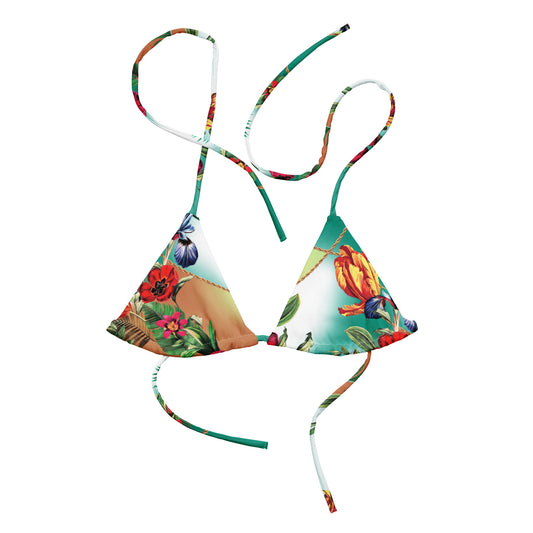 NINA SHARAE SWINWEAR | TRIANGLE BIKINI TOP ONLY- TROPICAL ORANGE MINT GREEN HAWAIIAN PRINT | PLUS SIZE