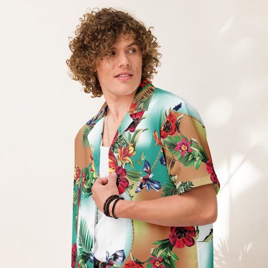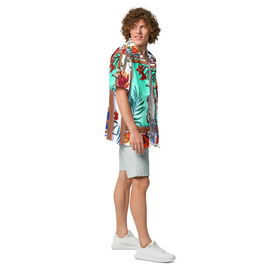 Nina Sharae Swimwear | Male Button Up Shirt | Blue Hawaiian Rope & Flower Unisex |